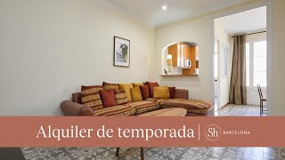ShBarcelona presenta este magnífico apartamento totalmente amueblado y equipado. Dispone de 78 m2 con 2 habitaciones, una de ellas doble y la otra con cama individual, 1 baño completo con bañera, cocina independiente totalmente equipada, un espacioso salón-comedor, además de zona de despacho y vestidor. Asimismo, el inmueble cuenta con aire acondicionado tipo split, calefacción mediante radiadores de gas, internet por fibra, lavavajillas y lavadora, entre otros servicios.